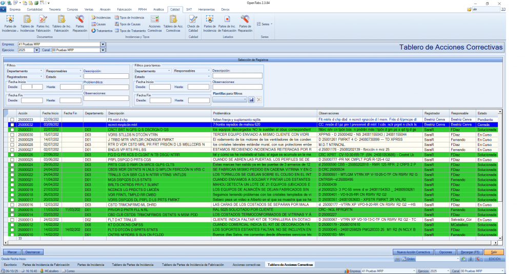 En OpenTabs ERP, la calidad está totalmente conectada con cada parte del negocio. Los registros en planta se vinculan con producción; las incidencias en clientes se reflejan en ventas; y las validaciones afectan directamente al stock y a la gestión de almacén.