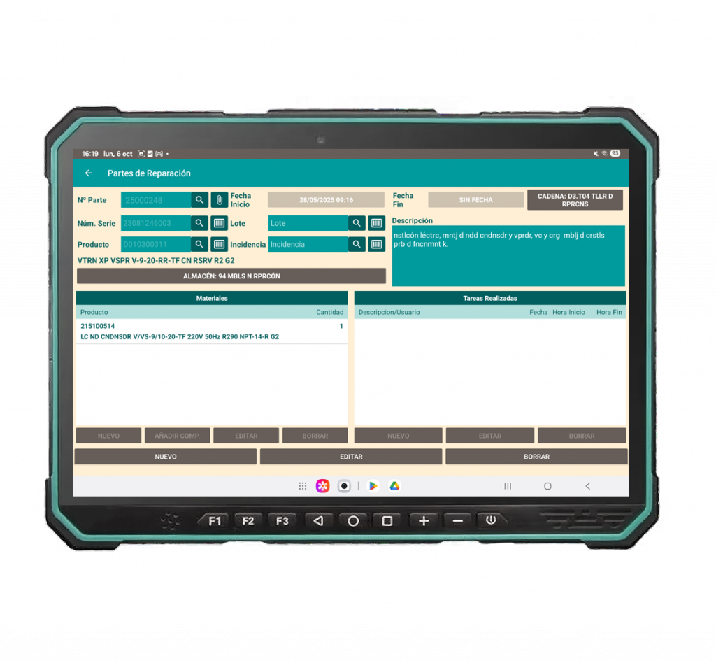 Además, todo el proceso puede gestionarse desde dispositivos móviles o industriales, lo que permite a los técnicos registrar la reparación en el mismo momento en que se realiza. Esta movilidad no solo agiliza el flujo de trabajo, sino que también garantiza datos precisos y actualizados, mejorando el control de costes, la calidad del servicio y la satisfacción del cliente.