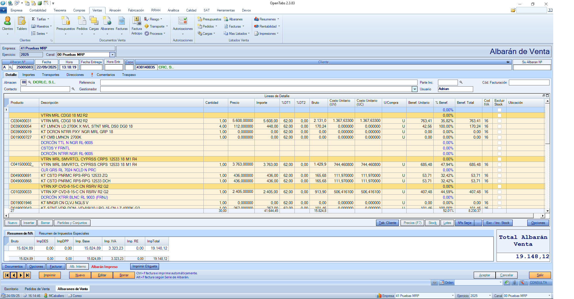 Con OpenTabs ERP, cada etapa del proceso comercial genera un documento que se vincula automáticamente al cliente y al pedido correspondiente. Desde la solicitud inicial, presupuesto, pedido, albarán, orden de carga, hasta la factura final, todo queda ordenado, accesible y trazable desde un único lugar. Esto evita errores, facilita auditorías y ahorra tiempo al equipo de ventas.
