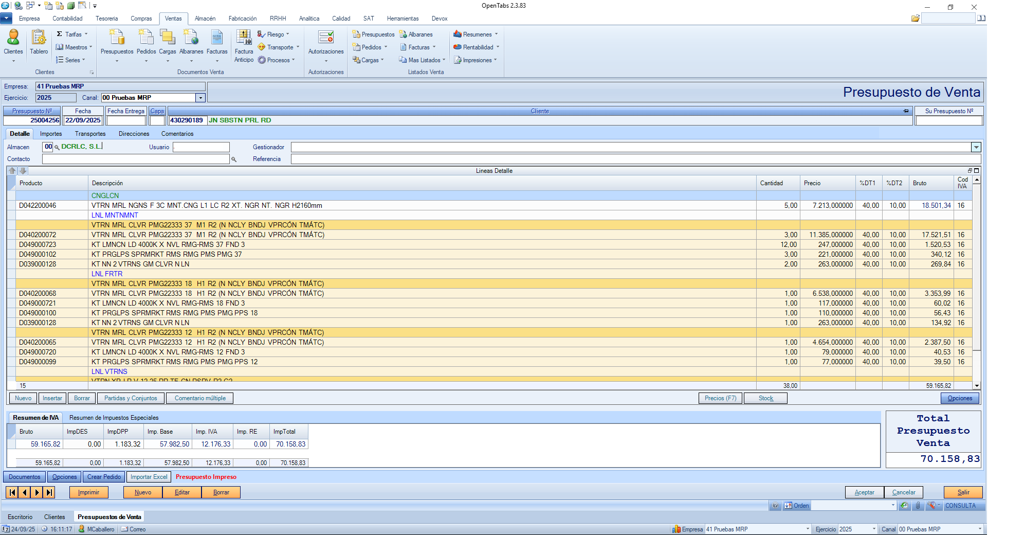 OpenTabs ERP unifica todos los documentos del proceso de venta en una única interfaz. Puedes generar presupuestos y convertirlos directamente en pedidos, albaranes u órdenes de carga sin repetir información. Esto evita errores, acelera el proceso y mejora la trazabilidad.